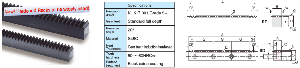 | SRCPFD15-1500HLJ | $1,247.50 | CAD N/A | Module N/A 4.7746 | Effective No. of Teeth N/A 100 | Shape N/A RD | Total Length Rack (A) N/A 59.055 in1500 mm | Face Width (B) N/A 1.969 in50 mm | Height (C) N/A 1.969 in50 mm | Height To Pitch Line (D) N/A 1.781 in45.23 mm |