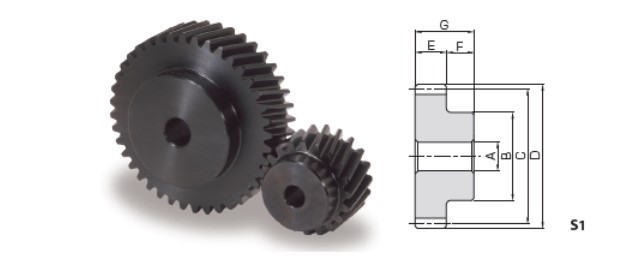 Having larger contact ratios compared to the SS spur gears, effective in reducing noise and vibration.