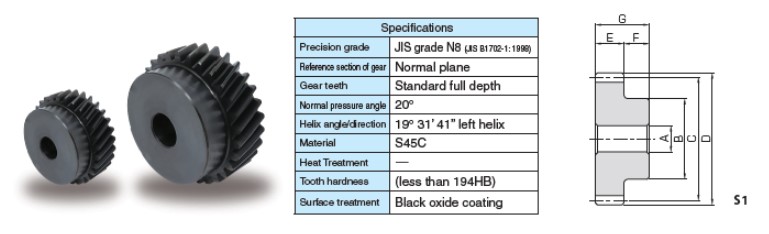 | SHE1.5-25LH | $57.30 | CAD N/A | Module N/A 1.5 | No. of teeth N/A 25 | Bore (A) N/A 0.472 in12 mm | Pitch Diameter (C) N/A 1.567 in39.79 mm | Outer Diameter (D) N/A 1.732 in44 mm | 57.3 | |