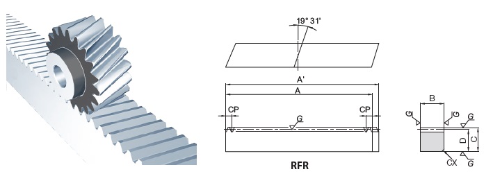 | ZST4-2000R | $2,216.94 | CAD N/A | Module N/A 4 | Effective No. of Teeth N/A 150 | Total Length (A) N/A 79.285 in2013.83 mm | Face Width (B) N/A 1.535 in39 mm | Height (C) N/A 1.535 in39 mm | Height To Pitch Line (D) N/A 1.378 in35 mm |