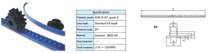 Module N/A 0.8 | Effective Number of Teeth N/A 792 | Total Length Rack (A) N/A 78.740 in2000 mm | Face Width (B) N/A 0.150 in3.8 mm | Height to Pitch Line (D) N/A 0.098 in2.5 mm |