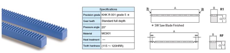 Module N/A 2 | Effective Number of Teeth N/A 79 | Shape N/A R1 | Total Length Rack (A) N/A 19.882 in505 mm | Face Width (B) N/A 0.787 in20 mm | Height (C) N/A 0.984 in25 mm | Height To Pitch Line (D) N/A 0.906 in23 mm |