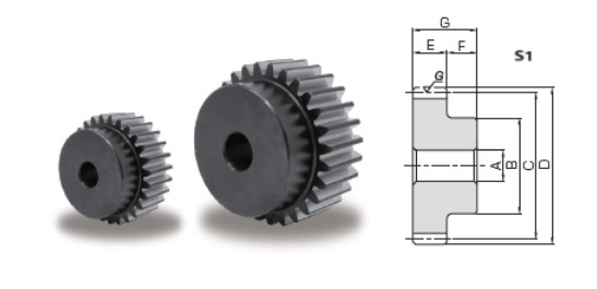 | KSG1-25 | $9,876.54 | CAD N/A | Module N/A 1 | No. of Teeth N/A 25 | Shape N/A S1 | Bore Diameter (A) N/A 0.315 in8 mm | Pitch Diameter (C) N/A 0.984 in25 mm | Outer Diameter (D) N/A 1.063 in27 mm | Total Length (G) N/A 0.787 in20 mm |